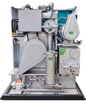 8. Equipped with VFD which allow flexible selection of dry clean and extraction speed to suit the wash items. Fast extraction. Excellent protection for the washed items. Advanced refrigeration system to control the solvent temperature. Variable extract spin speed to meet the requirement of dry clean of leather and other fabrics. Fast drying, low energy consumption.