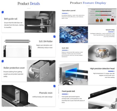 It is suitable for Food, pharmaceuticals, toys, garment, shoes, chemicals, leather, knitting, paper products and other industries to detect metal impurities mixed in the production process of raw materials. Such as: iron and non-ferrous magnetic metal items (iron, copper, aluminum, stainless steel and other common metals can be detected.can be tested in bulk , bagged, bottled, boxed.
